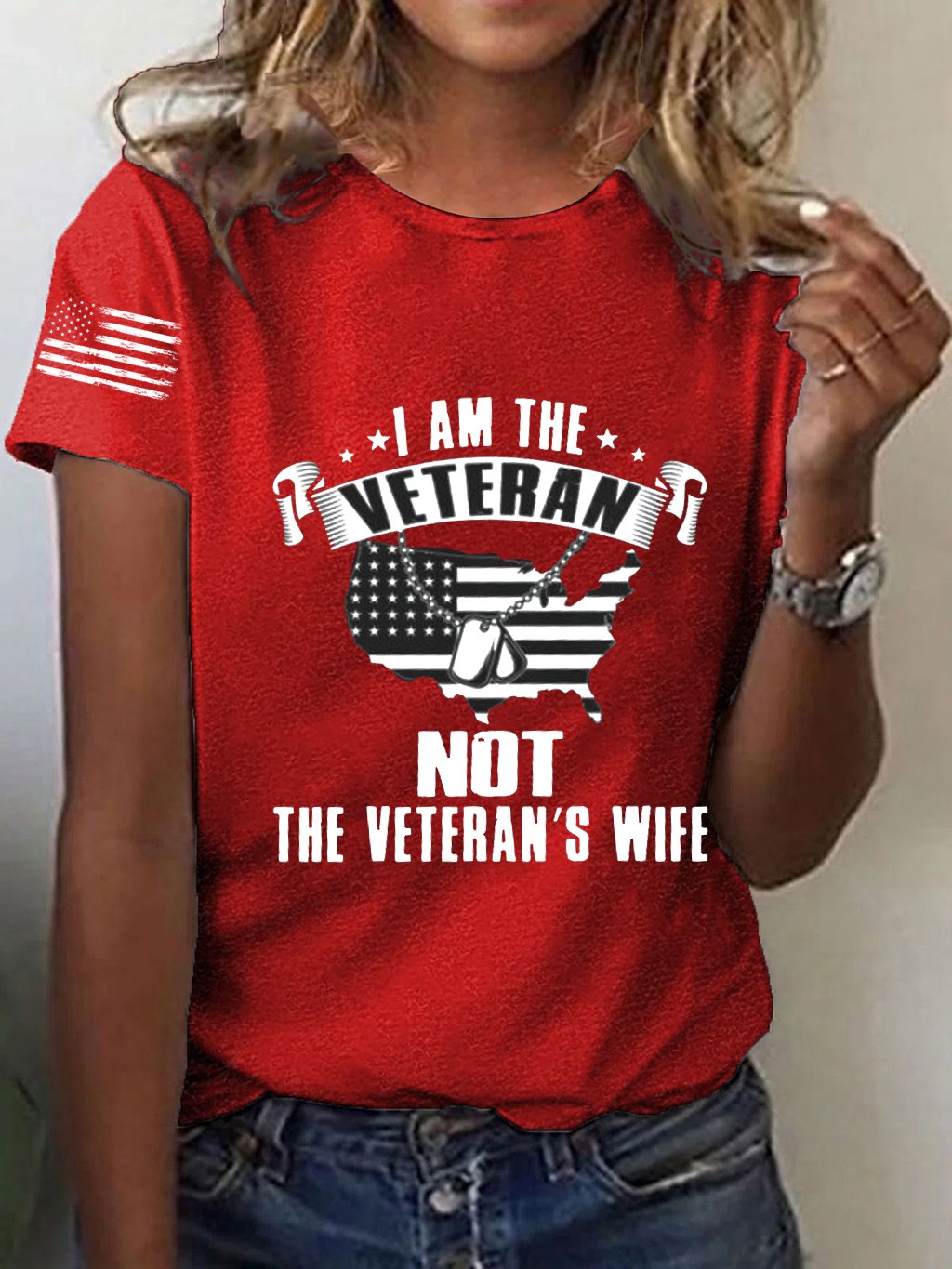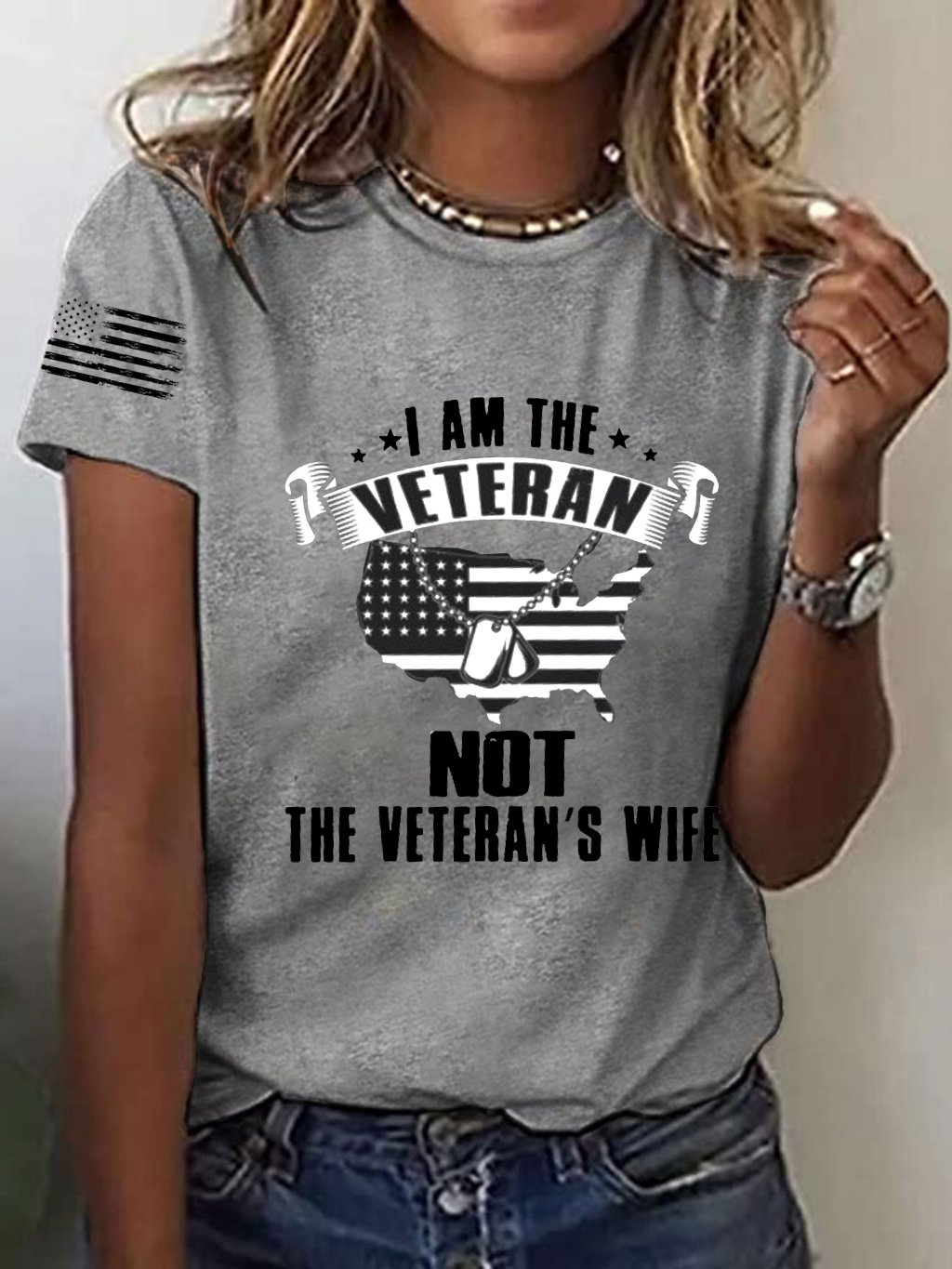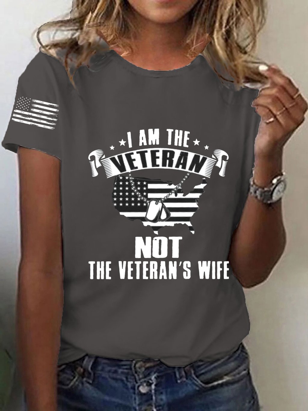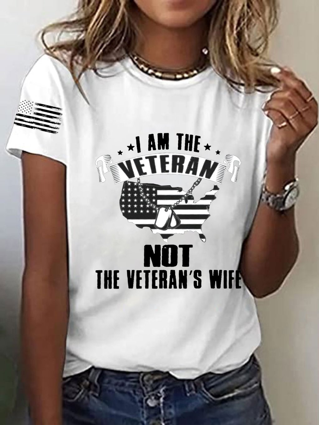 Women's I Am The Veteran Not The Veteran's Wife Printed T-Shirt