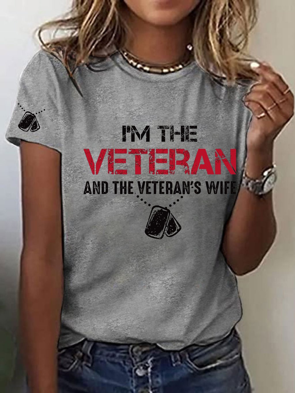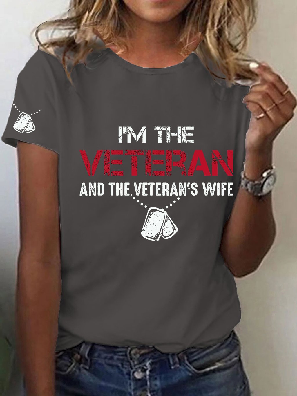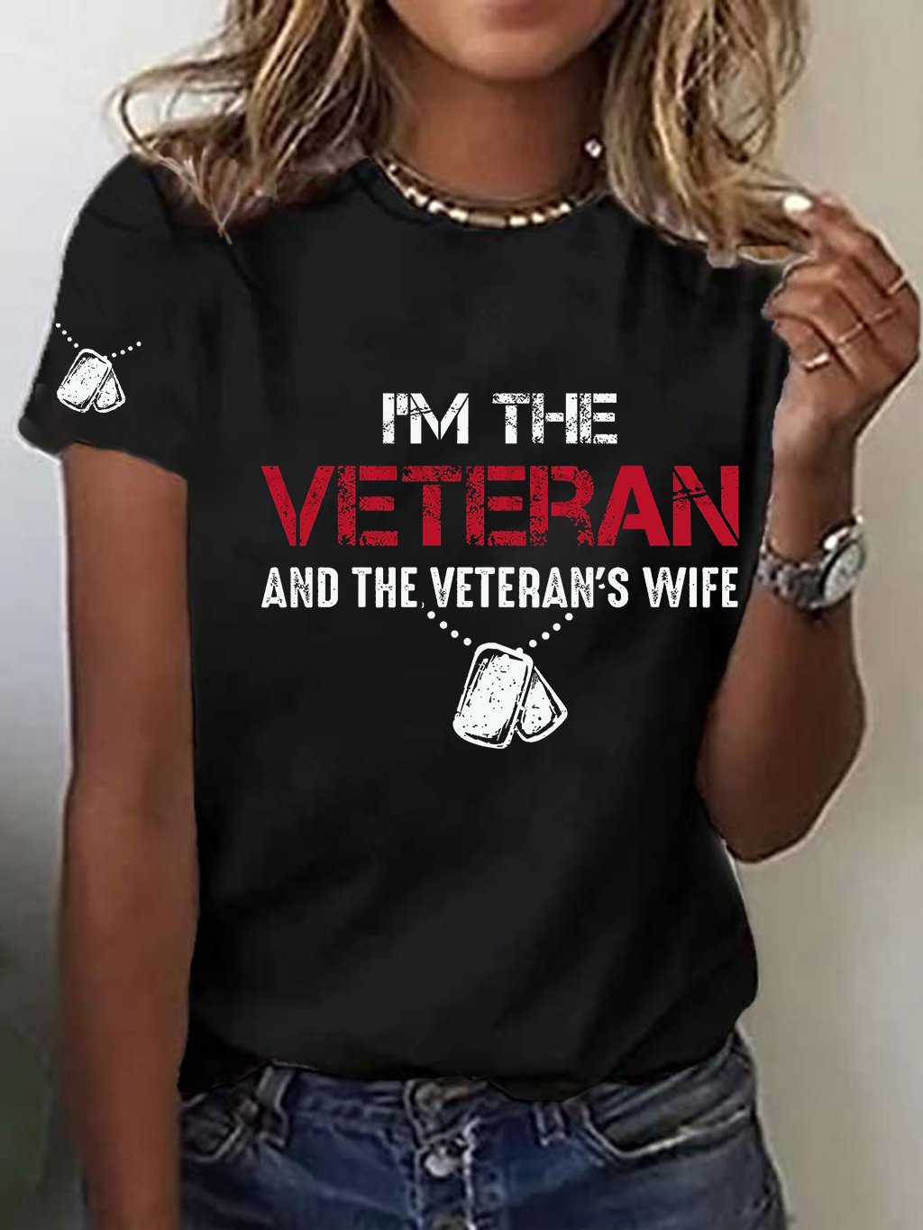 Women's I'm A Veteran And The Veteran's Wife Printed Casual T-Shirt