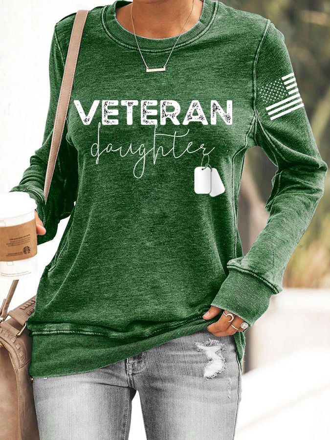 Women's Proud Veteran Daughter American Flag Sweatshirt