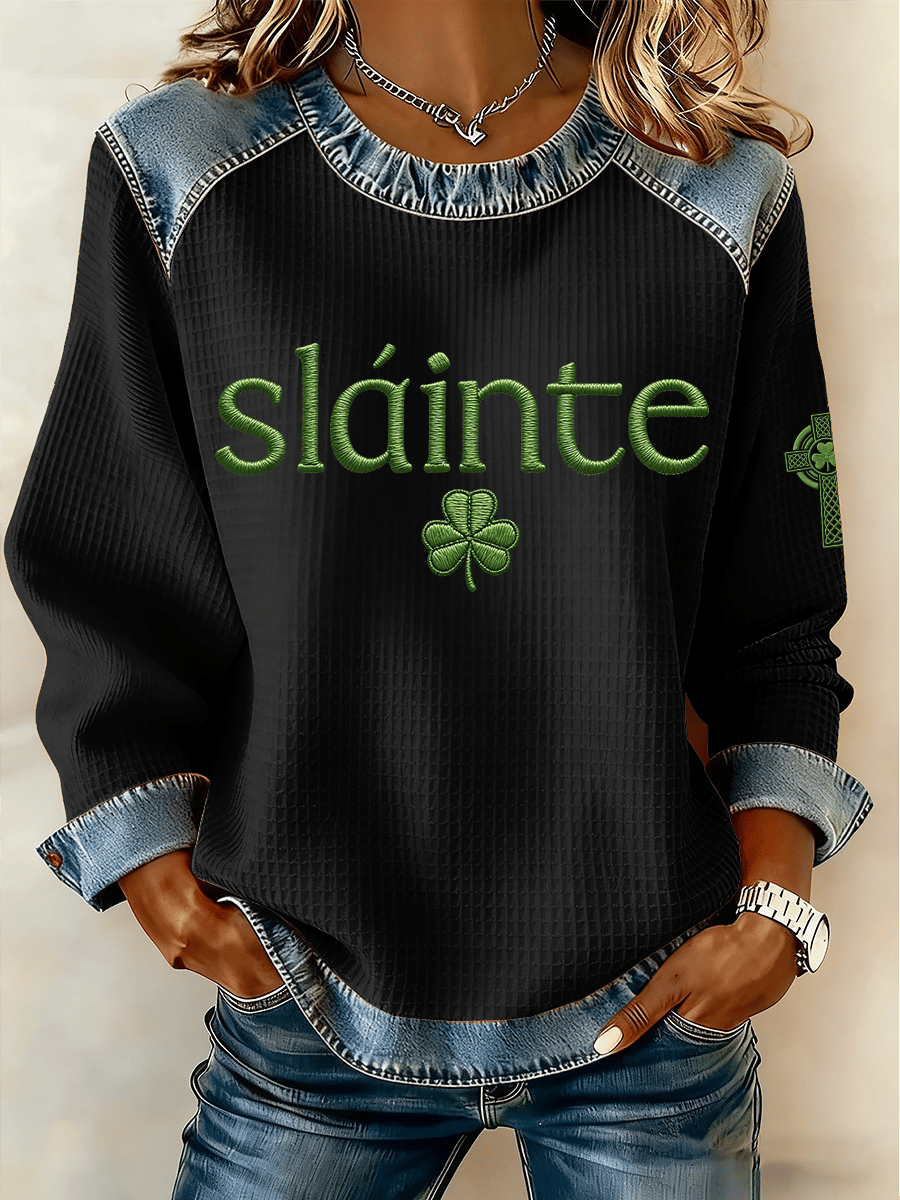 Women's St. Patrick's Day Print Waffle Sweatshirt