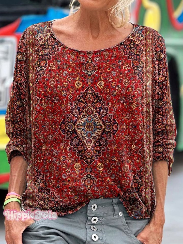 Women's Vintage Art Print V-neck Casual T-Shirt