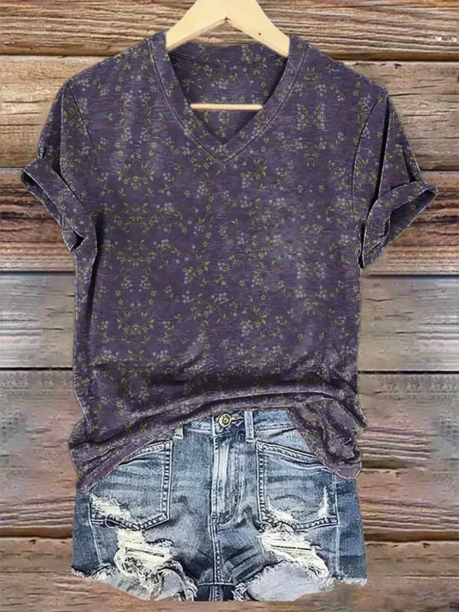 Women's Vintage Floral Art Print Casual Cotton And Linen Shirt