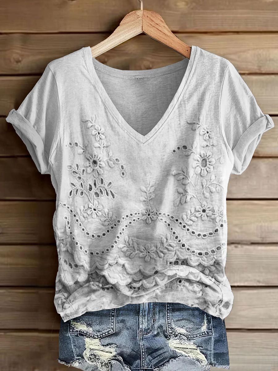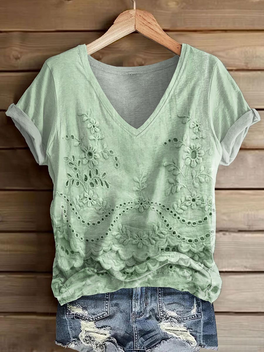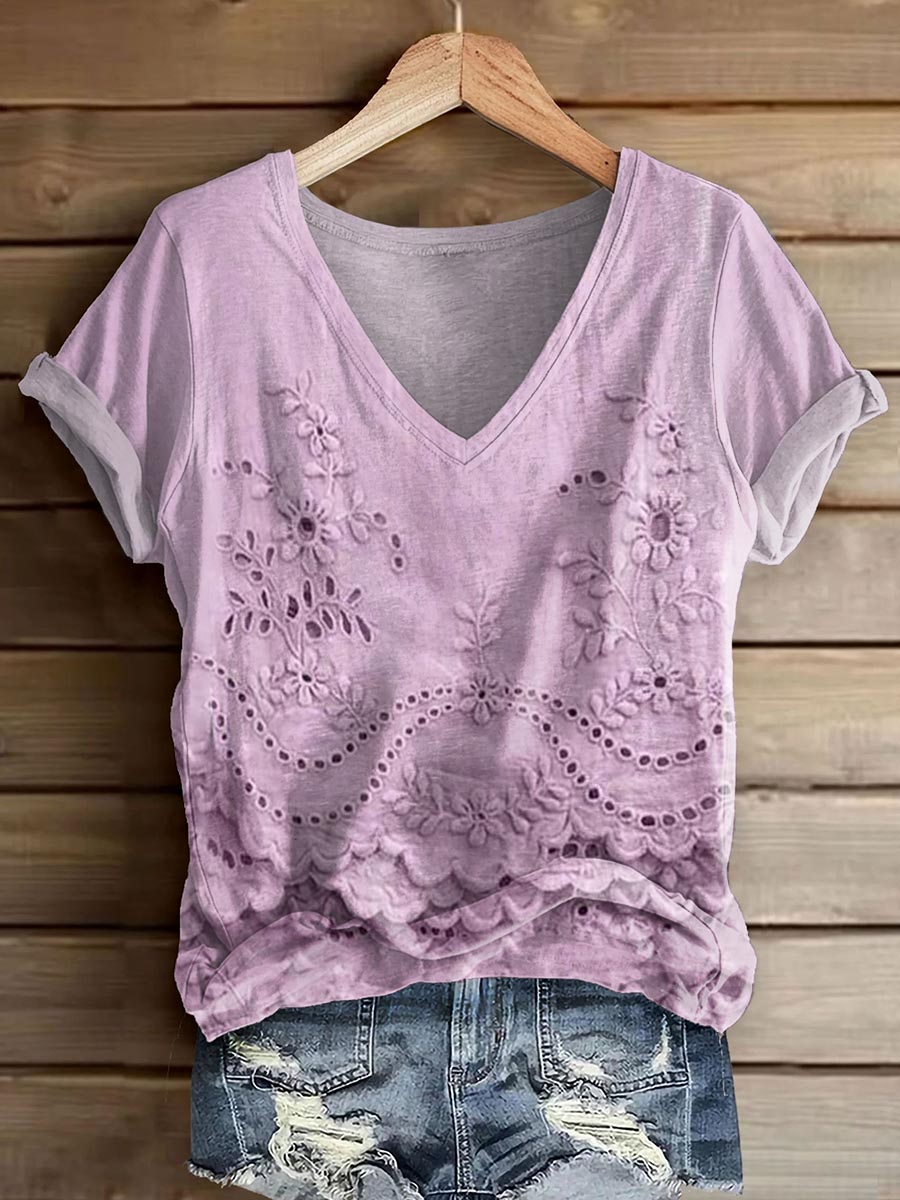 Women's Vintage Floral Texture Art Print V-neck Casual T-Shirt